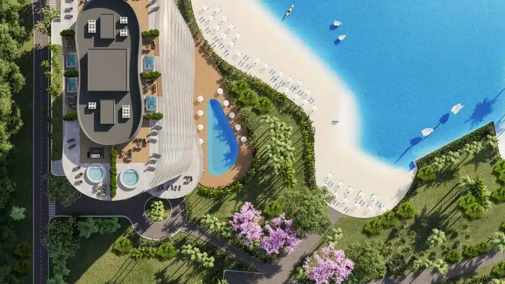 • ONE Beach Club con playas de arena, Crystal Lagoon™ de siete acres, playa cabañas, lugares de picnic, kayak, paddleboarding, botes de remo, colchonetas de agua, inflables, esnórquel y servicio de refrigerios, toallas y bebidas estilo conserje
